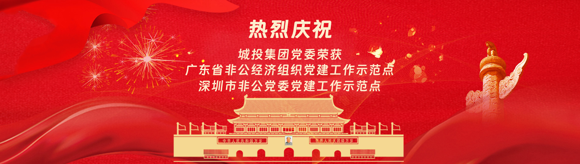 在上級(jí)黨委的正確領(lǐng)導(dǎo)下,在城投集團(tuán)的大力支持下,集團(tuán)黨委緊緊圍繞企業(yè)發(fā)展戰(zhàn)略,將黨建引領(lǐng)核心貫穿始終,以“五心”工程(即思政建設(shè)“核心”工程、經(jīng)營(yíng)發(fā)展“中心”工程、企業(yè)文化“向心”工程、黨建品牌“匠心”工程、服務(wù)基層“愛(ài)心”工程)為抓手,大膽探索,勇于突破和創(chuàng)新,不斷形成城投黨建特色,有效輸出城投實(shí)踐經(jīng)驗(yàn),充分發(fā)揮“紅色引擎”作用,先后獲得“深圳市非公黨委黨建工作示范點(diǎn)”、“深圳市兩新組織黨建工作示范點(diǎn)”、“深圳市文明單位”、“深圳市先進(jìn)基層黨組織”、“廣東省非公有制經(jīng)濟(jì)領(lǐng)域黨建工作示范點(diǎn)”等榮譽(yù)稱(chēng)號(hào)。